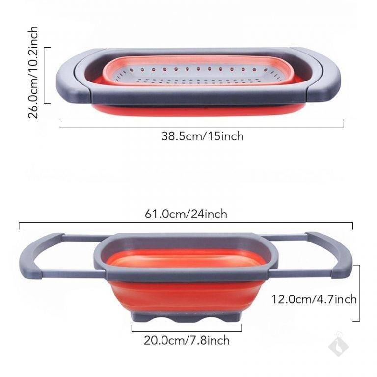 La crépine alimentaire longueur 38.5cm et largeur 26cm, crépines effondrées est 4.06 cm de haut. Ainsi, vous pouvez le placer proprement lorsque vous avez terminé.