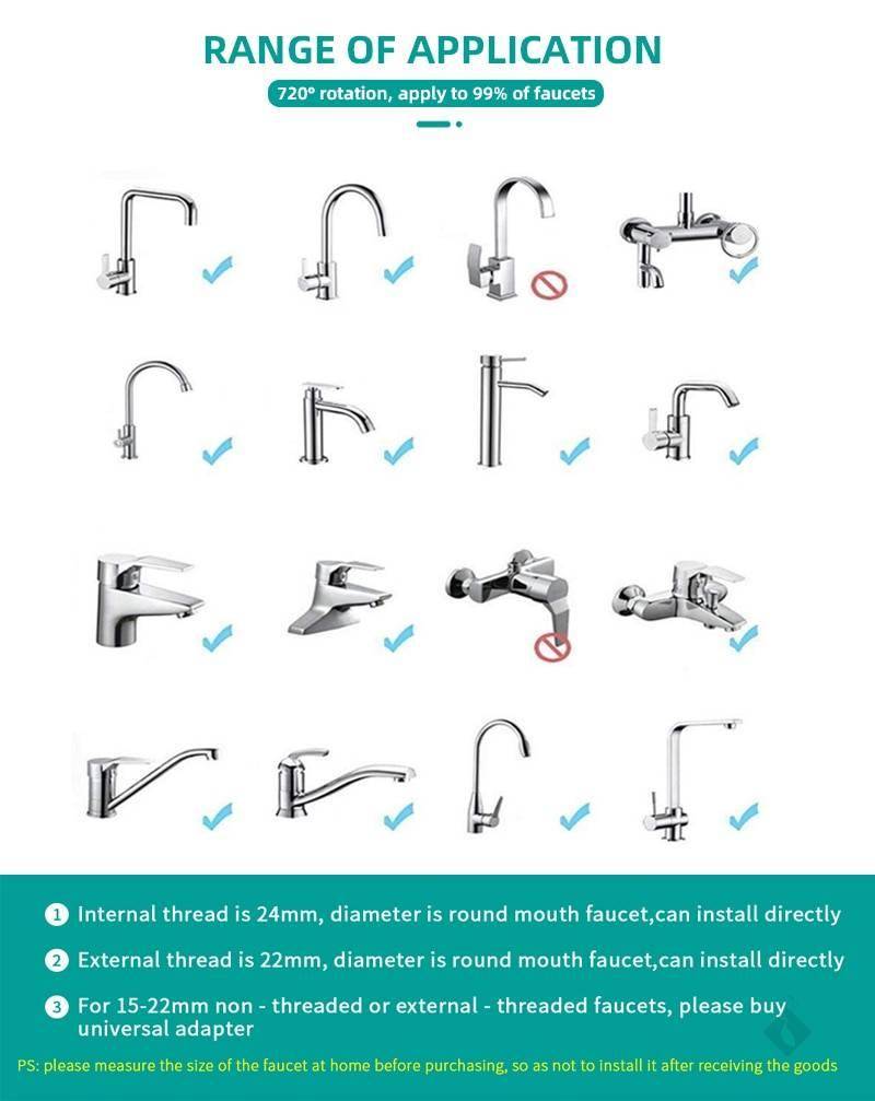 PS: veuillez mesurer la taille du robinet à la maison avant d’acheter, afin de ne pas l’installer après avoir reçu la marchandise