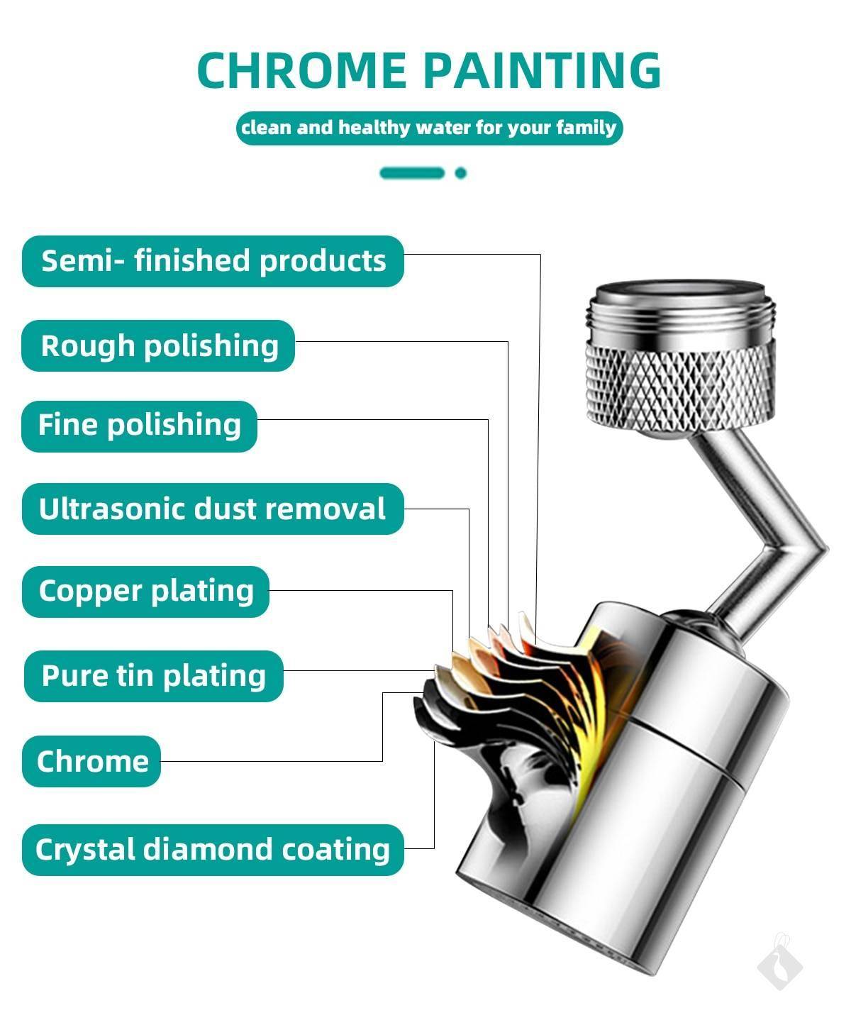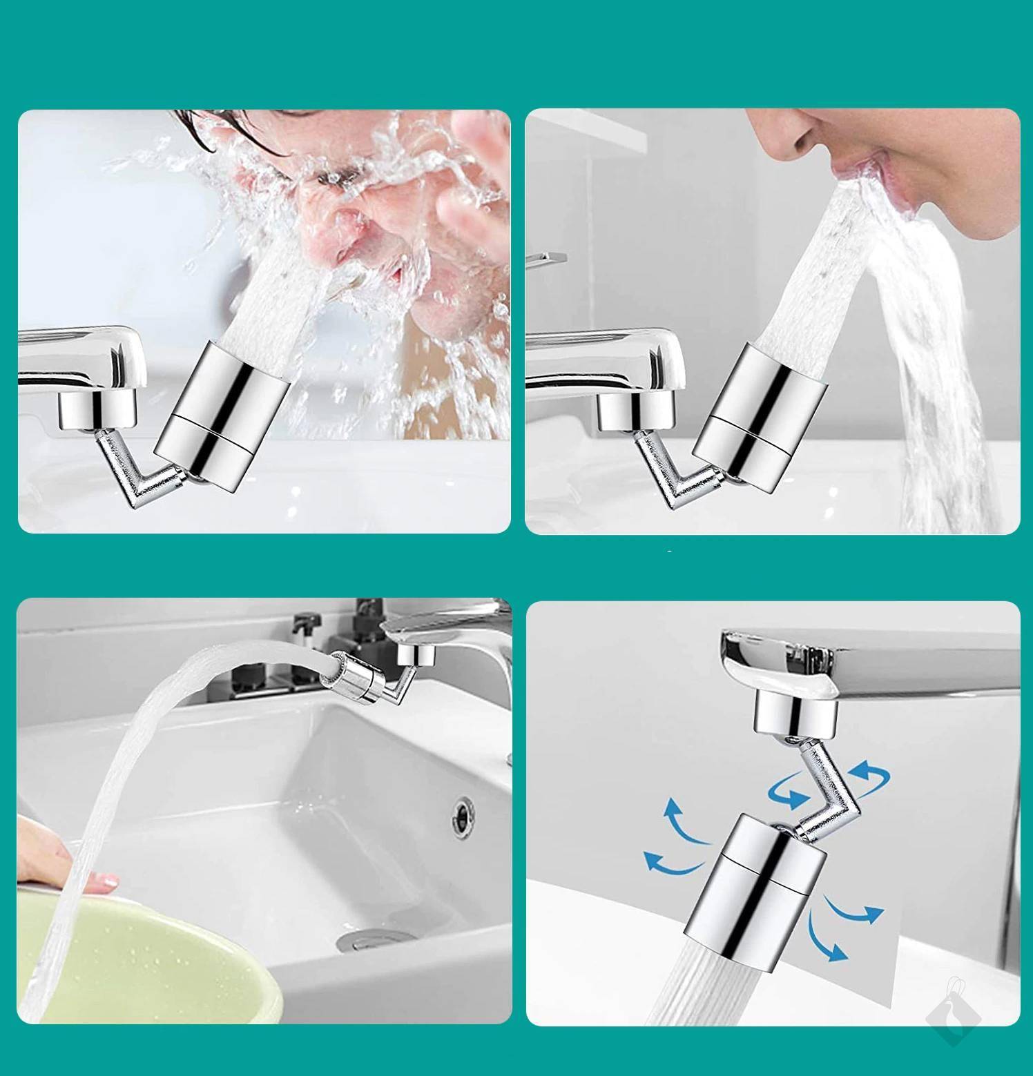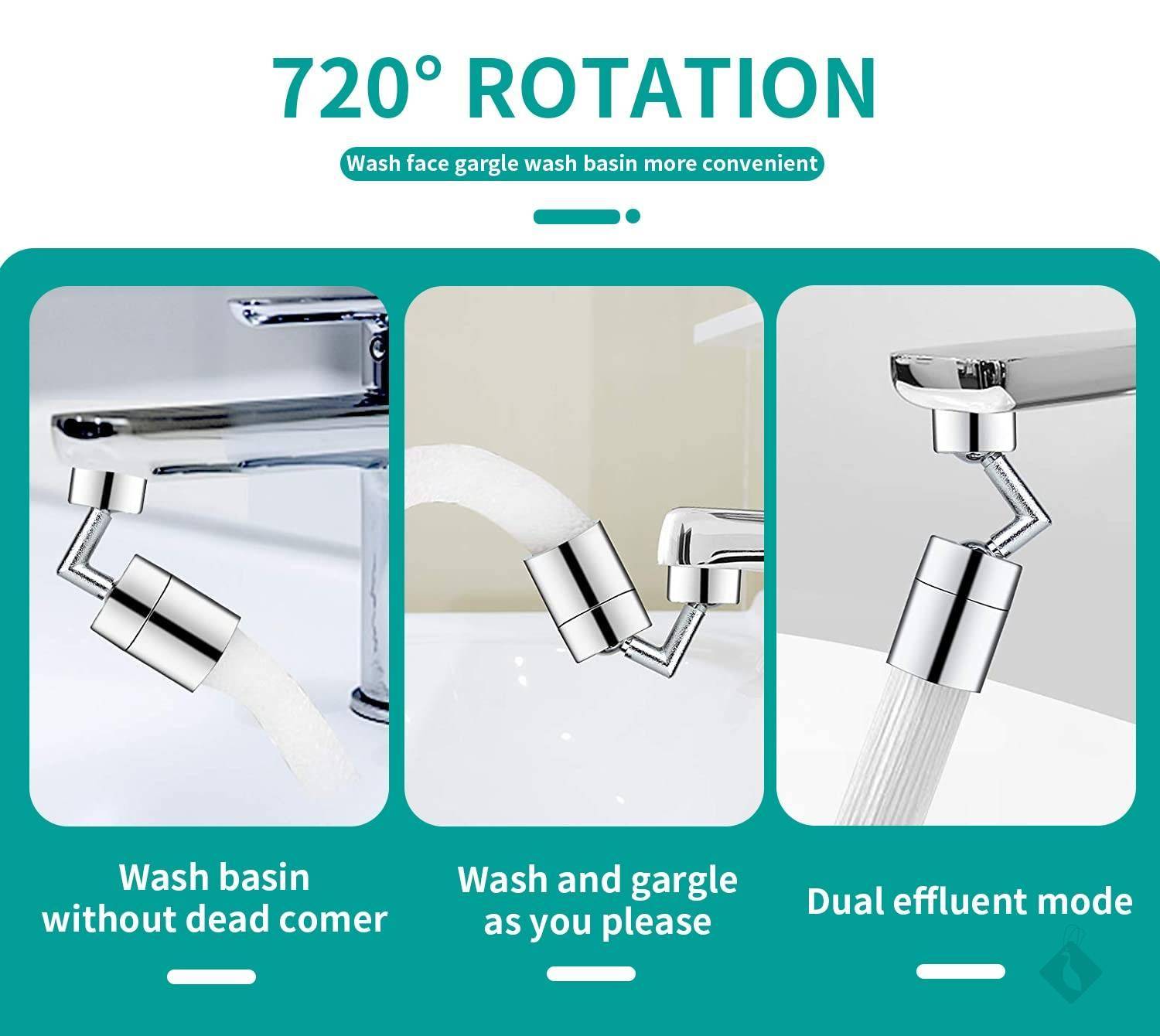 Faites pivoter la sortie d’eau de 720 degrés, qui peut être ajustée à n’importe quel angle pour faciliter le nettoyage de la vaisselle, des fruits et légumes, ainsi que le lavage de votre visage, gargarisme, etc. plus pratique!