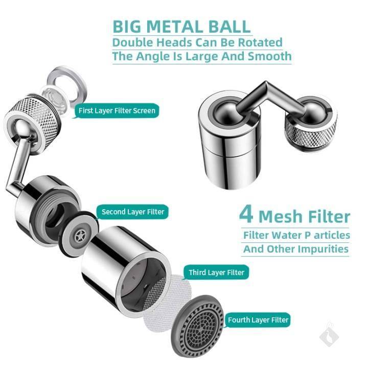 Aérateur de robinet Filtre de robinet bidirectionnel à 720 ° qui peut être tourné à volonté.